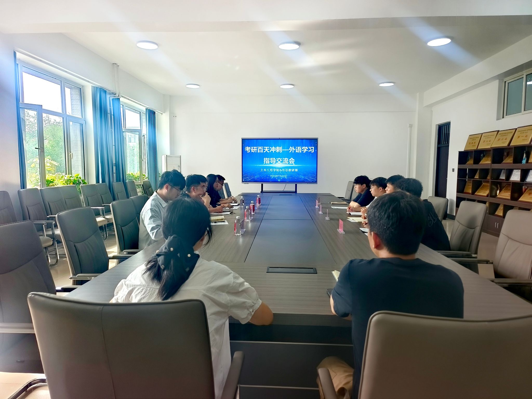 随着全国硕士研究生招生考试日益临近,为助力土木学院学生备考、有效提升外语应试水平,9月16日,太阳集团tyc234cc副主任(主持工作)王晓晶及教师曹志应邀赴土木工程学院,参与“考研百天冲刺—外语学习指导交流活动”。本次活动在知行楼311举行,土木工程学院院长赵中华,院长助理杨楠,土木工程学院考研辅导员、班导师、学生代表参加活动。